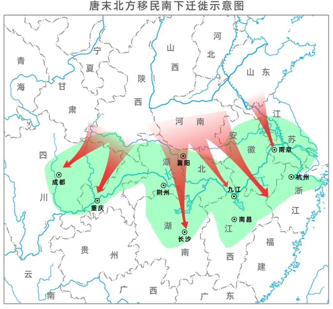 图片|唐末北方移民南下路线图 · 锦绣人文地理