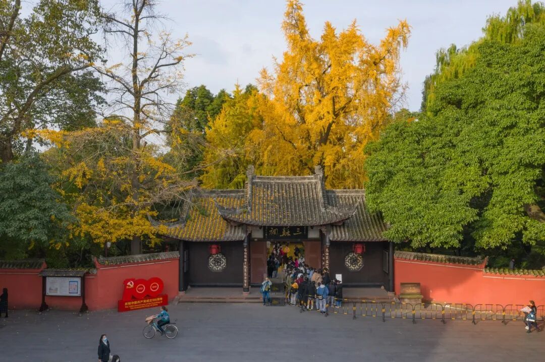 图片|四川眉山三苏祠,初冬,两棵600年古银杏树披上金甲 · 图虫创意 ©