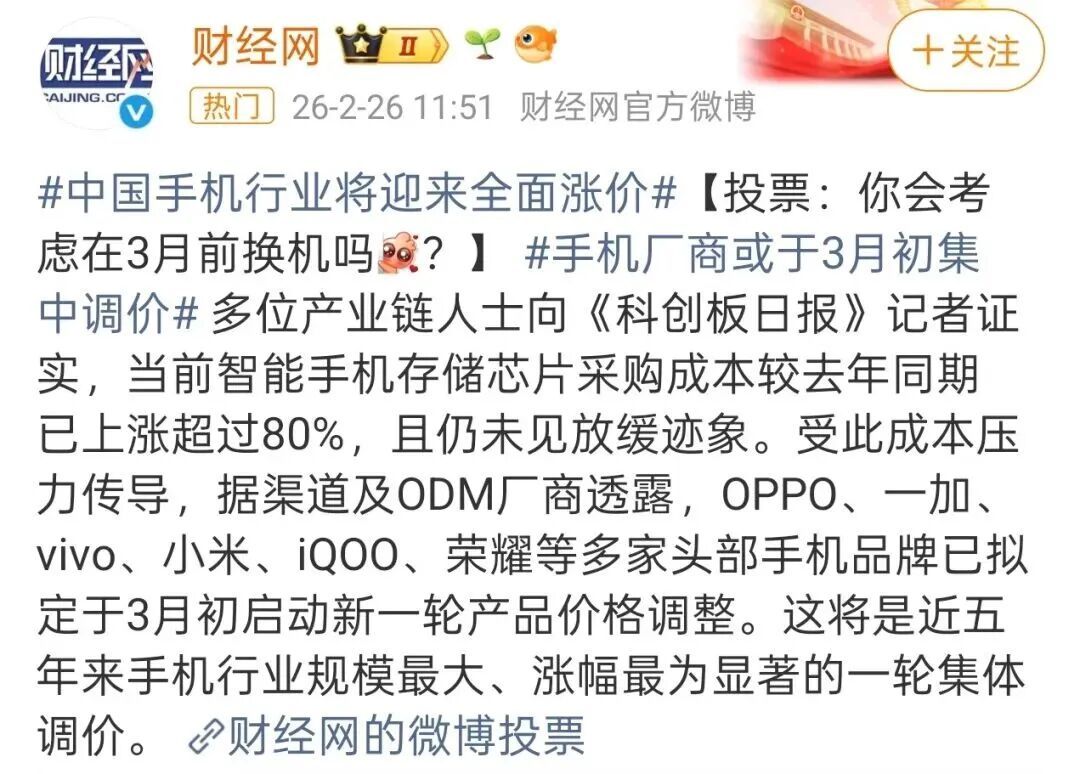 更加雪上加霜的是,此前还有新闻,国产手机的新机价格也会在今年全线涨价,给出的一大理由就是内存成本上升。