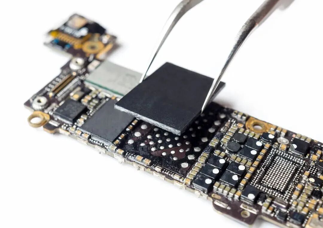 从手机主板上拆卸下的闪存芯片丨veer图库