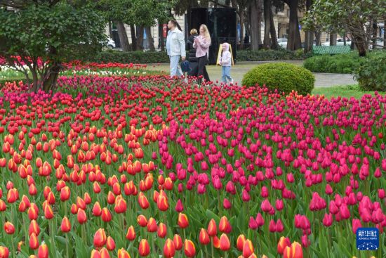 近日,位于阿塞拜疆首都巴库的海滨公园春意盎然,自己在线观看免费高清郁金香竞相绽放,吸引游客驻足欣赏、拍照留念。