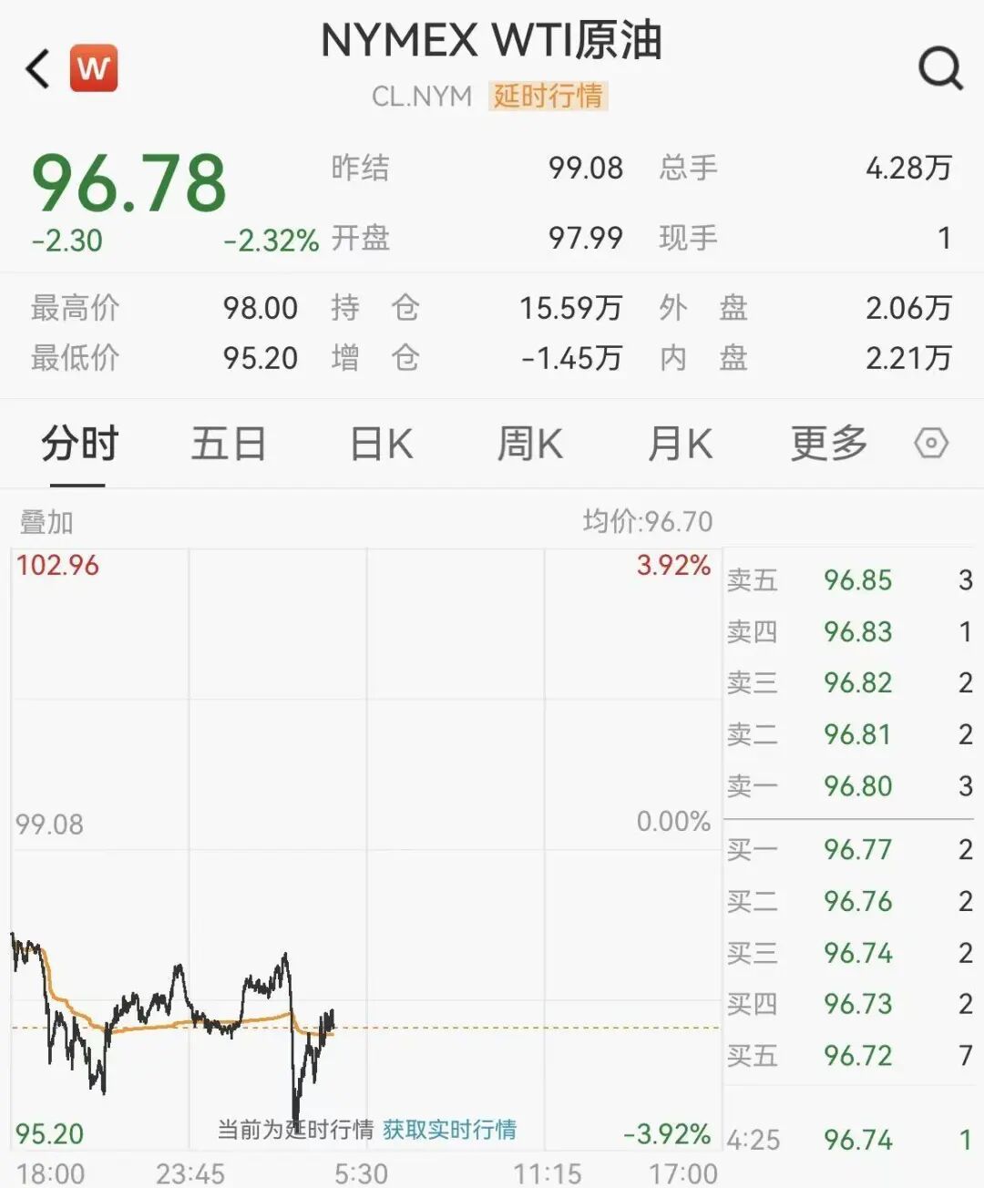 4月13日亚洲交易时段,国际油价大幅上涨一度突破每桶100美元。4月14日午后,国际油价快速走低,美油一度跌近4%,截至发稿跌幅收窄至2.3%报96.7美元/桶。消息面上,。据央视新闻报道,俄新社13日援引美国《大西洋》月刊报道称,美国和伊朗之间的下一轮“直接谈判”可能于16日在巴基斯坦首都伊斯兰堡举行。