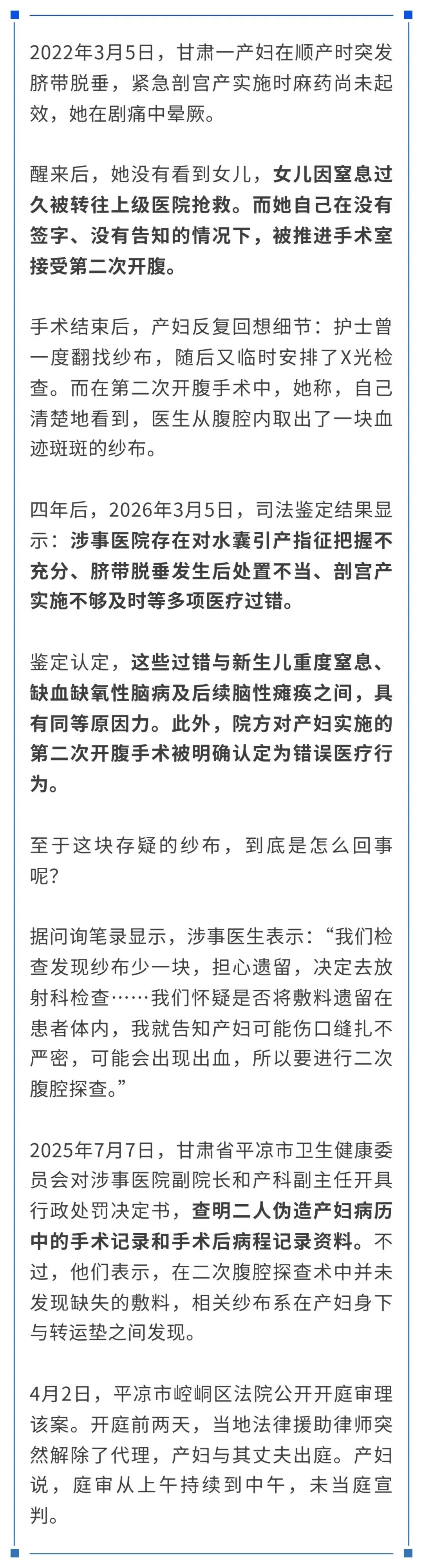 无码精品综合乱伦 擅自二次开腹,伪造病历、致新生儿脑瘫……司法鉴定明确医院过错